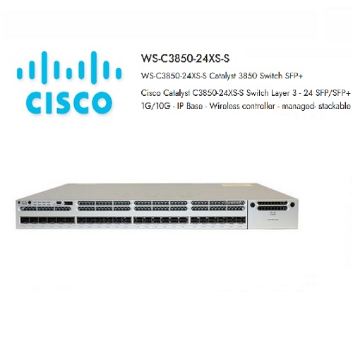 WS-C3850-24XS-S (WS-C3850-24XS-S Catalyst 3850 Switch SFP+)-1G/10G - IP Base - Wireless controller - managed- stackable